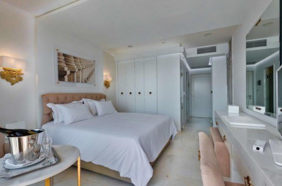Всего в отеле 88 номеров. В номерах: кондиционер c инд. пультом регулирования температуры, спутниковое ТВ, утюг и гладильная доска (по запросу), прямой телефон, бесплатный Wi-Fi интернет, сейф (за доплату), набор для приготовления кофе/чая, холодильник/мини-бар (за доплату), ванна/душ, фен, халаты и тапочки, банный набор из органических продукции, балкон/терраса. Двуспальная или 2 односпальные кровати. Deluxe SV Мраморный пол, мраморная ванная комната с ванной, вид на море. Deluxe SV Jacuzzi Мраморный пол, мраморная ванная комната с ванной, открытый джакузи, вид на море. Deluxe SV Private Pool Мраморный пол, мраморная ванная комната с ванной, персональный бассейн, вид на море.