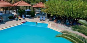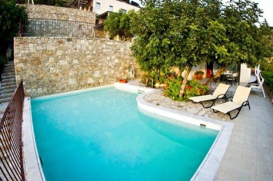 Апартаменты (125 м2) с прилегающей студией (50 м2). Двухэтажные апартаменты. 1 Этаж: гостиная с камином, столовая с полностью оснащенной кухней, туалет; 2 этаж: 2 спальни, 2 ванные комнаты.Терраса с частным бассейном с пресной водой, переносное барбекю. Студио состоит из спальни с зоной гостиной и столовой, ванной комнаты, небольшого садика. 400 метров до пляжа Св. Пантелеймона.