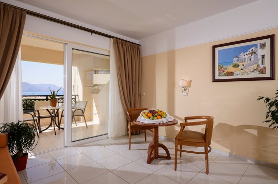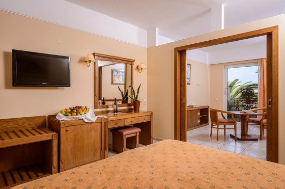 В отеле 120 номеров - двухместные и семейные сюиты с боковым видом на море (в сюитах комната и холл не разделены между собой дверью). В номере: Ванна/душ, туалет, кондиционер, телефон, телевизор, радио, мини-бар, фен, сейф (платно), терраса или балкон.
