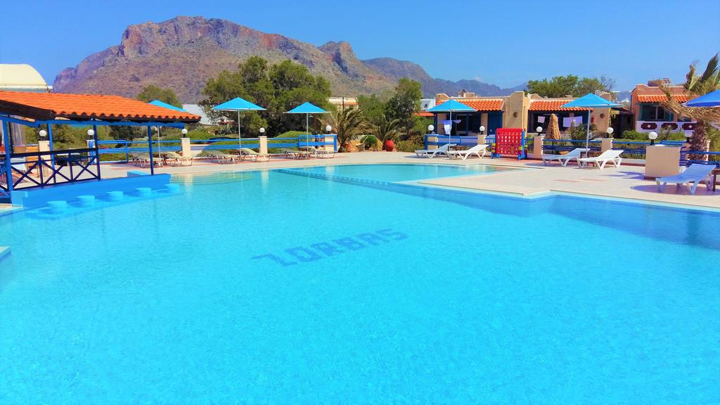 Апарт-отель Zorbas Beach Village находится на берегу моря в месте, где снимался фильм «Грек Зорба». Территория отеля занимает участок площадью 30 000 м2. К услугам гостей номера-студио и апартаменты с кухней, бесплатным WiFi и меблированной террасой, а также открытый бассейн, детская площадка и теннисный корт. Номера-студио и апартаменты оформлены в средиземноморском стиле, а из окон открывается вид на Критское море.