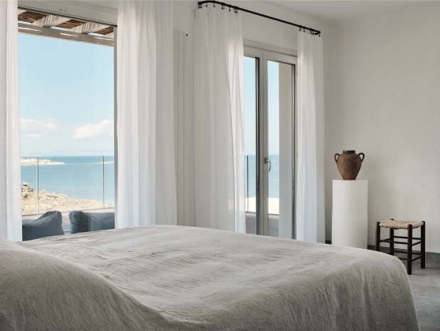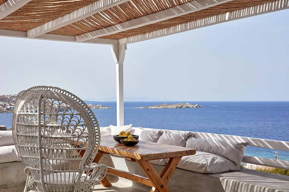 Двуспальная кровать king size, ванная комната с душем, гостиная зона; просторная собственная терраса с обеденной и зоной отдыха с большой кушеткой; панорамный вид на море и на закат;
