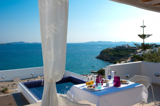 Эти номера имеют подогреваемые джакузи на террасах с видами на море и остров Делос. В номере гостям предлагается кровать размера king size, туалетный столик и современная ванная комната (площадь внутри – 19 кв. м, снаружи – 20-30 кв. м).