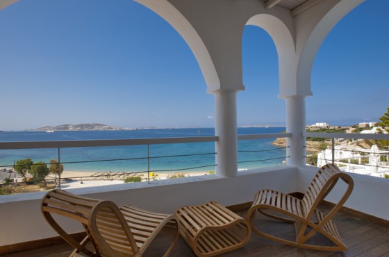 Расположенные на разных уровнях комплекса эти сюиты имеют собственные террасы и подогреваемые джакузи с видом на пляж Агиоса Стефаноса и на столицу Миконоса, Хору. Эти номера предлагают кровати размера king size, просторные ванные комнаты и зоны отдыха с французскими окнами, которые выходят на частные террасы.