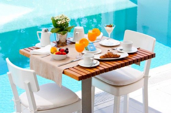 • Ресторан у бассейна со столиками в помещении и на свежем воздухе