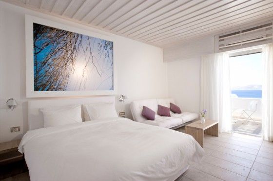 Джуниор сюиты, расположенные на первых двух этажах отеля, представляют собой просторные комнаты с кроватями размера king size и раскладным диваном на два спальных места. В номерах так же есть уютные балконы с видами на море и Хору (площадь внутри – 25-30 кв. м, снаружи – 3-10 кв. м).