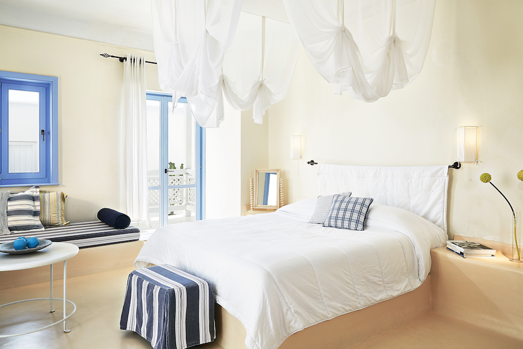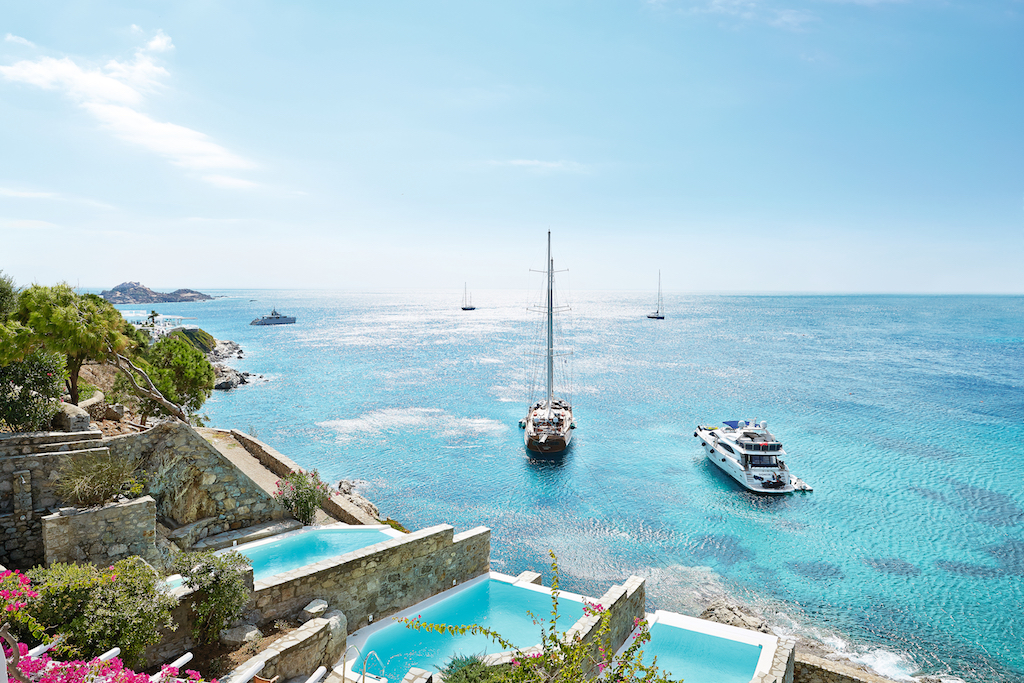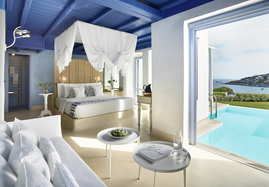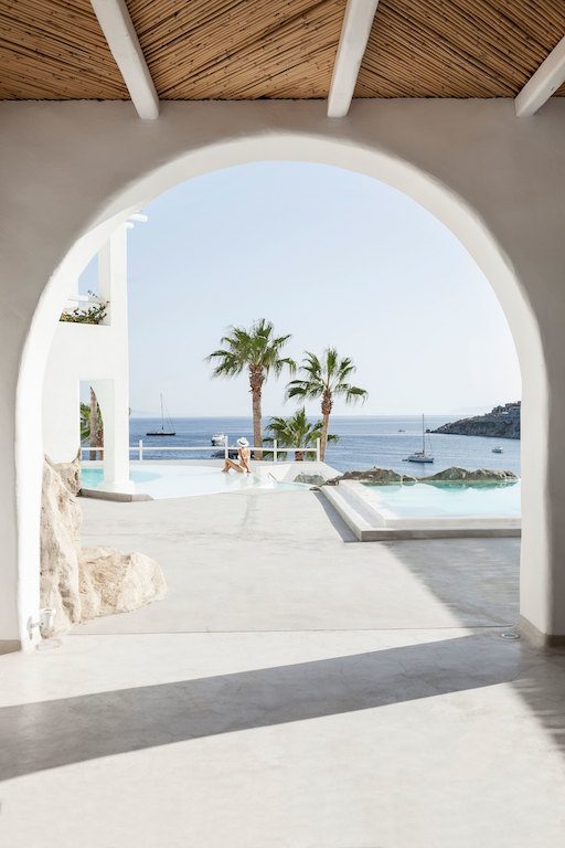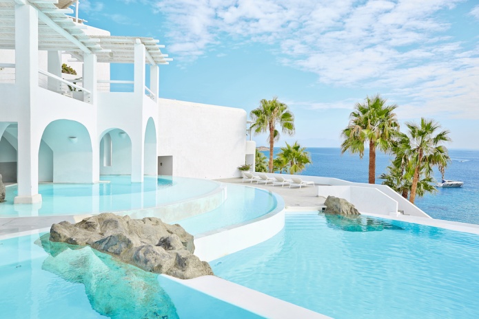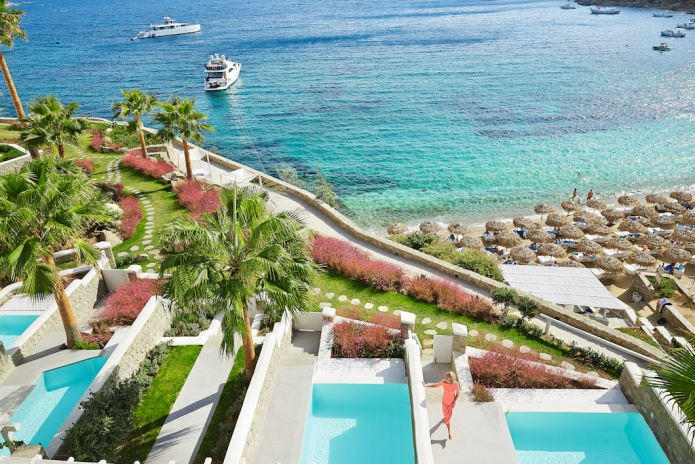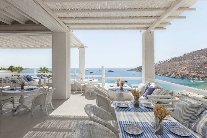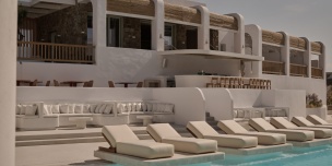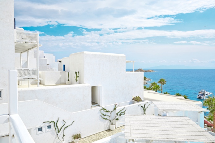 Отель расположен над заливом у песчаного пляжа Псару, в 3,5 км от города Миконос и в 4 км от аэропорта.
