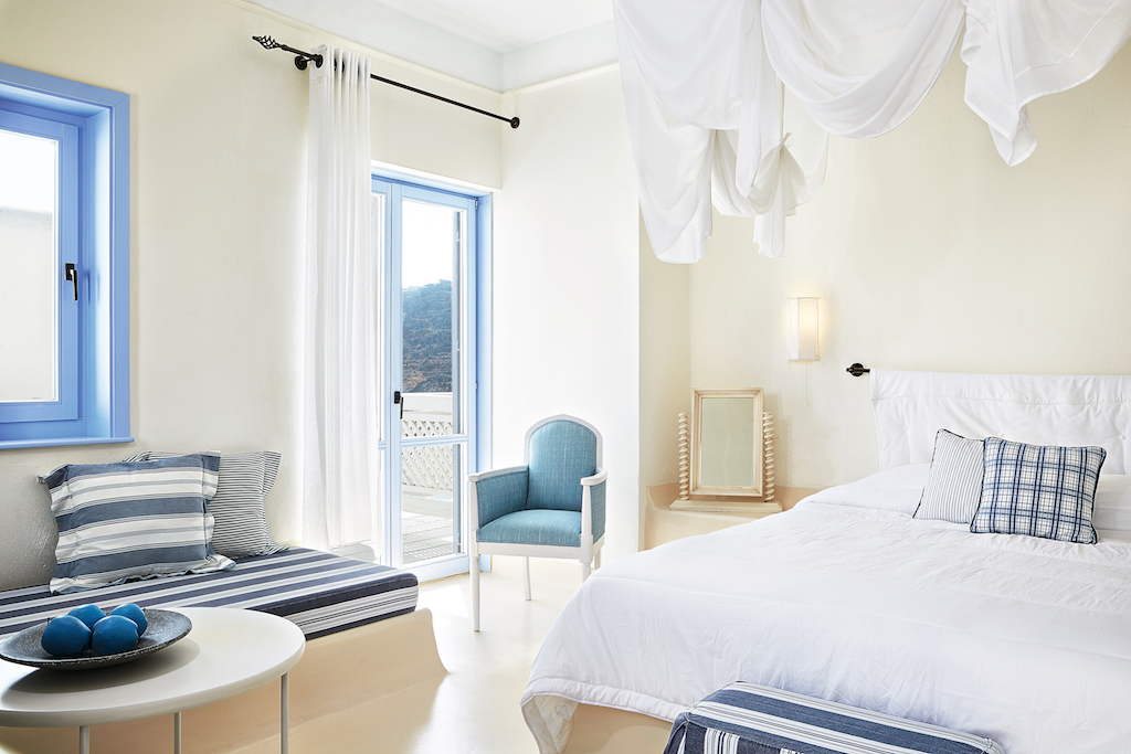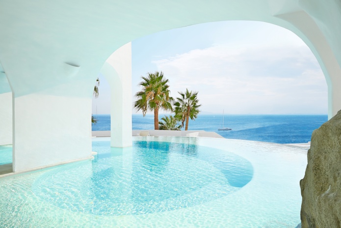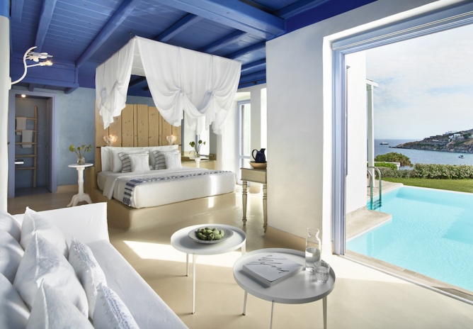Отель Grecotel Mykonos Blu находится на холме над песчаным пляжем Псару, признанным лучшим на острове Миконос. Сьюты, бунгало и виллы расположены среди экзотических садов с видом на море, в некоторых номерах есть джакузи или бассейн. К услугам гостей рестораны и бары, спа-центр с сауной, двухуровневый пейзажный бассейн, большой конференц-центр и фитнес-зал.