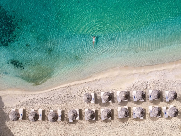 Отель расположен над заливом, в 100 м от песчаного пляжа Псару (душевые и кабинки для переодевания, зонтики, шезлонги с мягкими матрасами и пляжные полотенца — бесплатно, сервис на пляже)