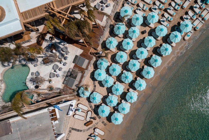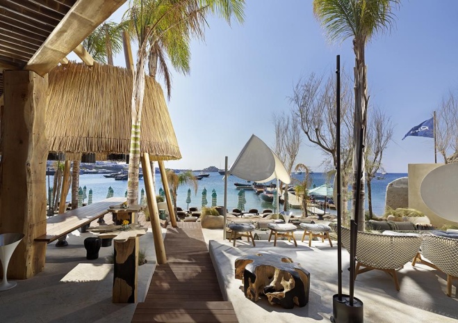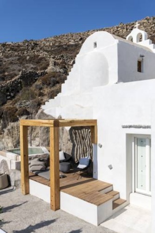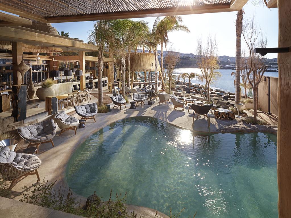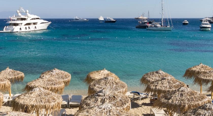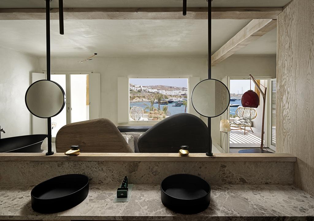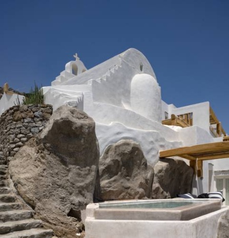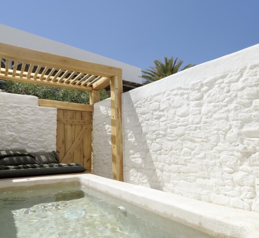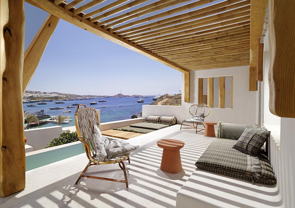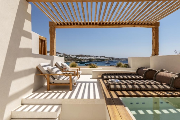 Современный бутик-отель Kensho Psarou расположен на знаменитом пляже Псару на острове Миконос.