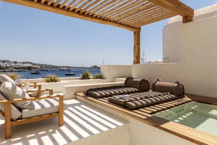 В номерах отеля —джакузи на терассе или собственный бассейн с панорамным видом на море.
