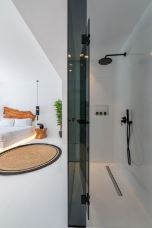 Mega Mansion 1 – роскошная современная вилла с окнами от пола до потолка и видом на Эгейское море, состоит из 5 спален и 5 ванных комнат. К услугам гостей – открытый бассейн, парковка, услуги консьержа.