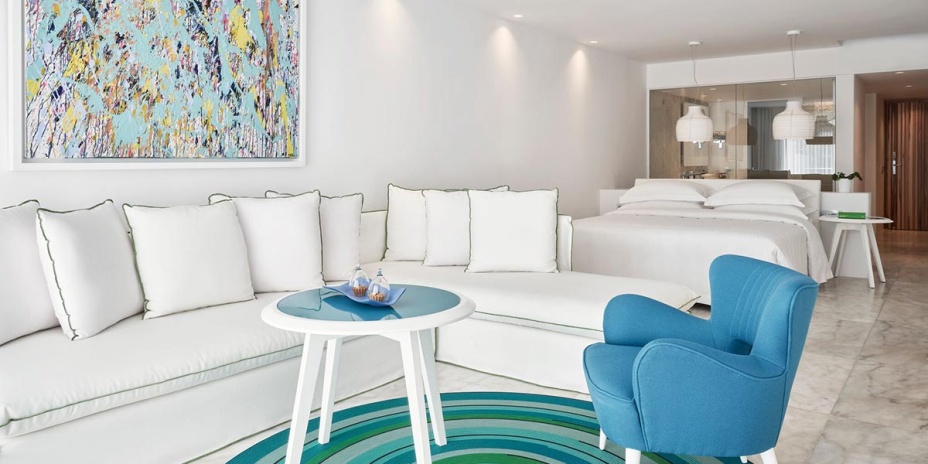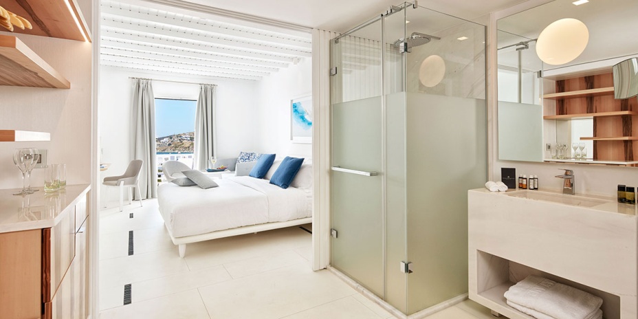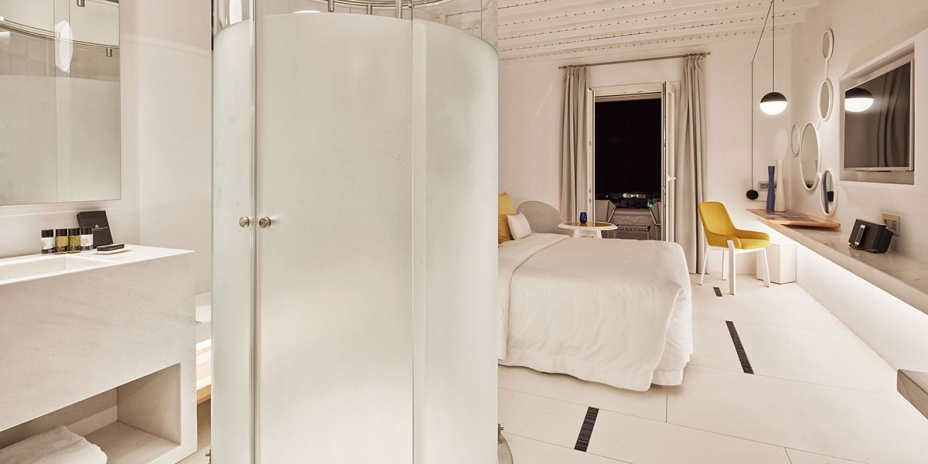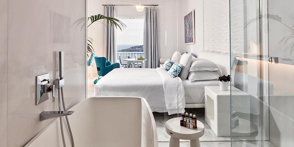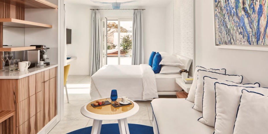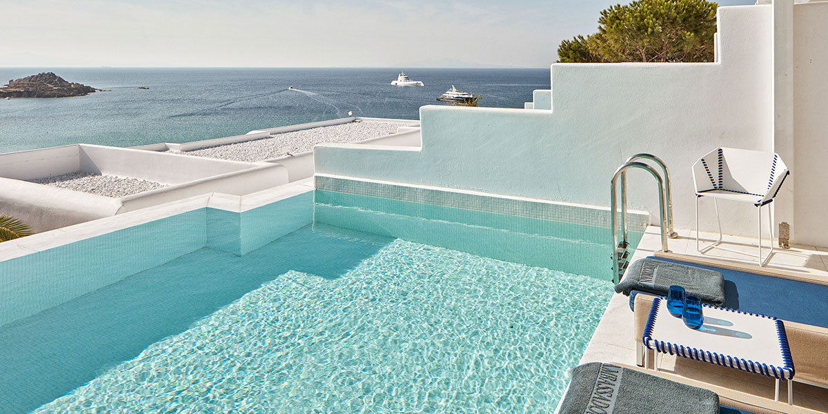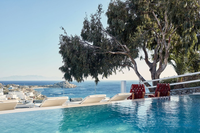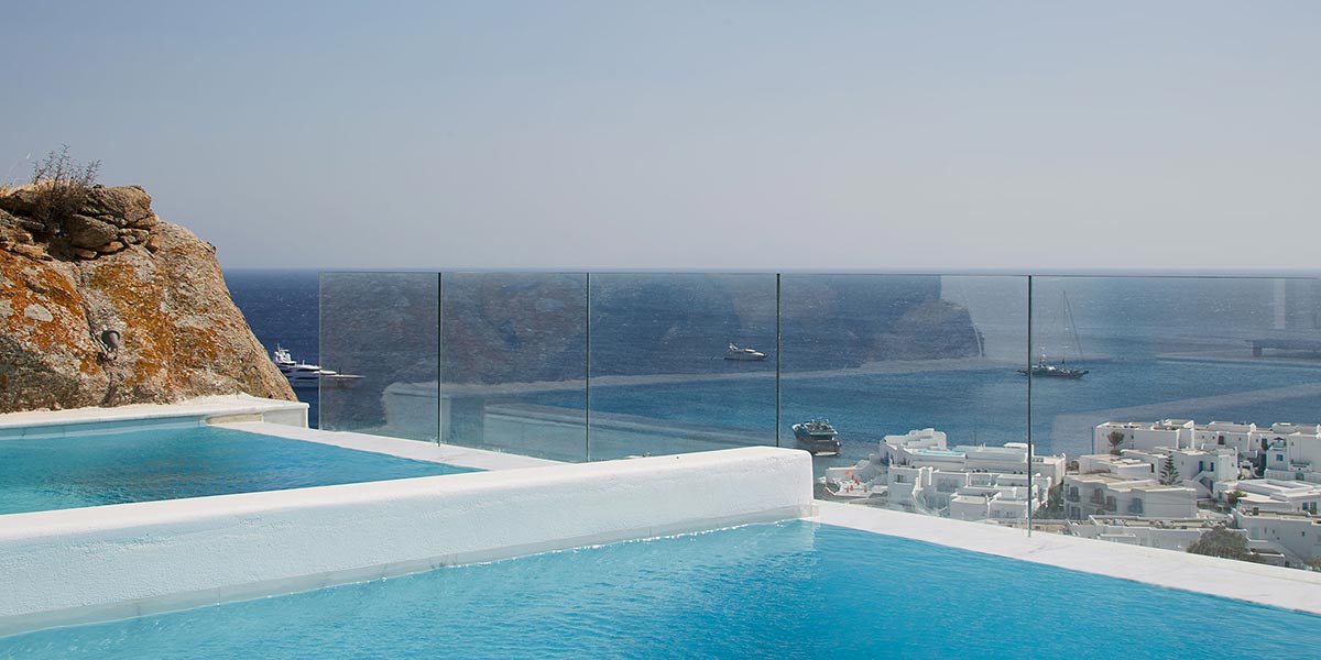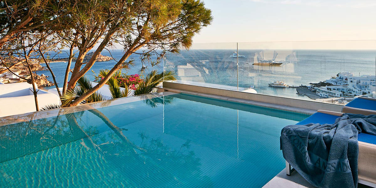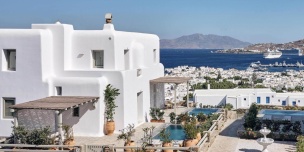 Myconian Ambassador Relais & Châteaux — это роскошный бутик-отель на южном побережье Миконоса, всего в 150 метрах от пляжа Платис-Гиалос. Отель расположен на холме и предлагает потрясающие виды на Эгейское море и окрестные пляжи, сочетая уединённость с близостью к популярным местам острова.