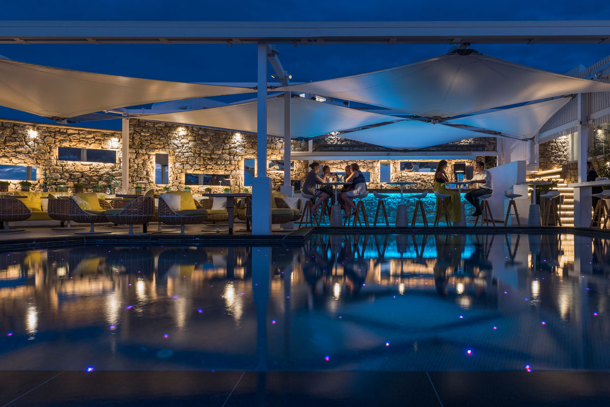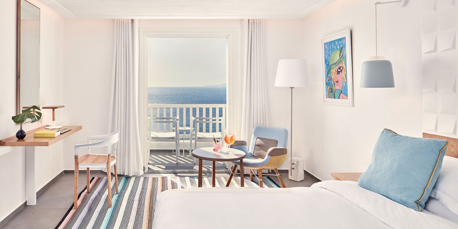 Роскошные номера и люксы с балконами, большими бассейнами или джакузи предлагают уединение и комфорт, контрастируя с яркой атмосферой солнечной террасы и закатами у бара Kitrino. Особое внимание привлекает ресторан Baos с потрясающим панорамным видом на Миконос и море, где высокая кухня раскрывает свою истинную сущность.
