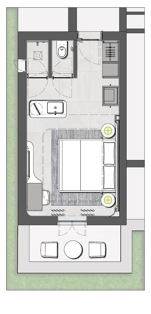 В номерах: зеркало для макияжа, халат, тапочки, фен, банные принадлежности, Wi-Fi, телевизор со спутниковыми каналами, телефон, кондиционер, мини-бар, сейф, кофемашина, набор для приготовления чая, утюг и гладильная доска.