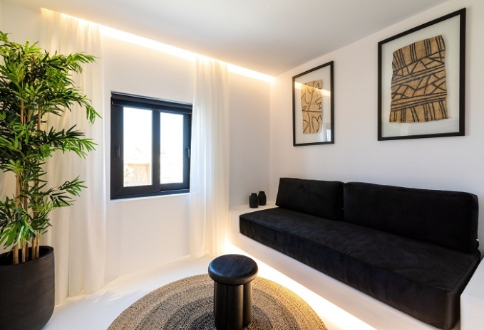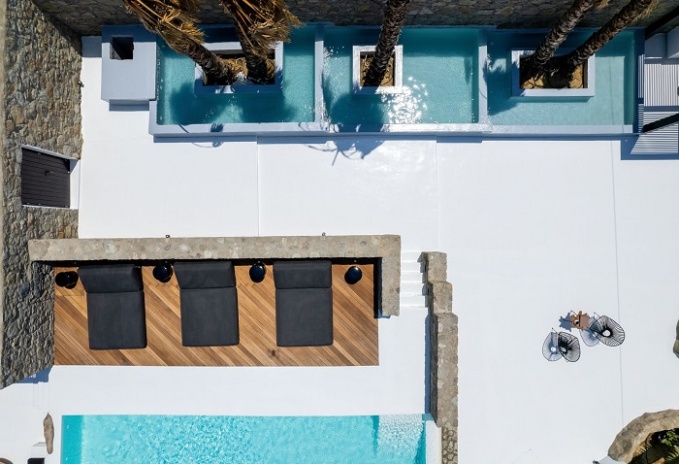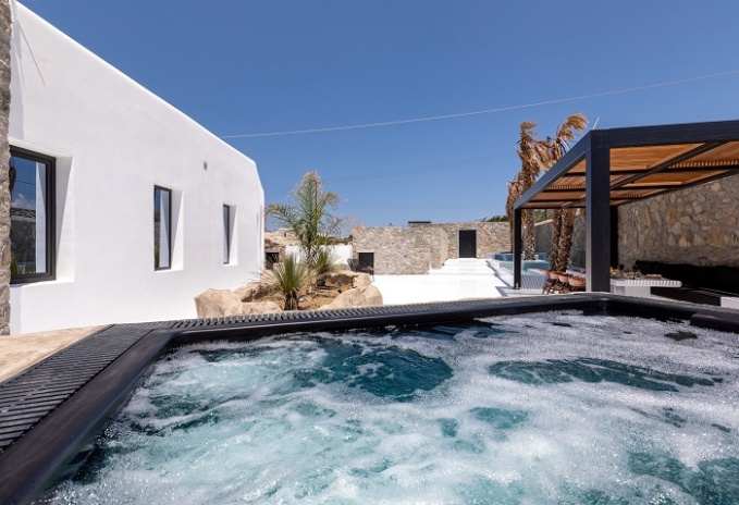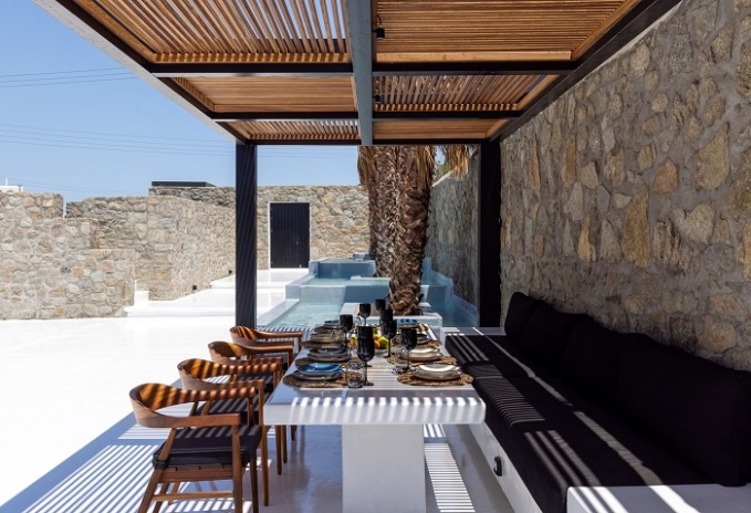 Mykonos Town Black Villa – уникальная вилла с необычным дизайном, в котором сочетается кикладский стиль и серый камень. Вилла находится в городе Миконос и рассчитана на 13 человек.
