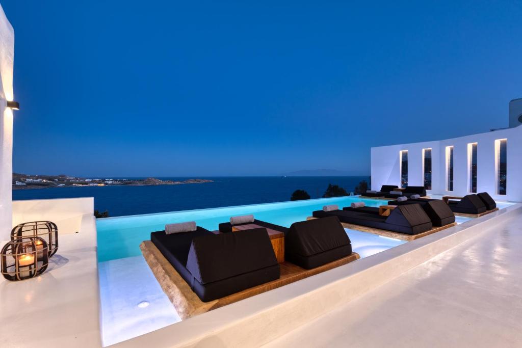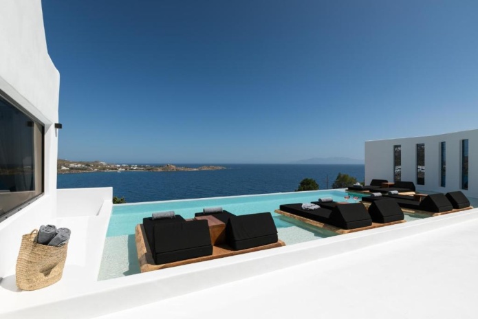 В комплексе есть вилла Psarou Black Villa 2 с 6 спальнями на 12-13 человек.