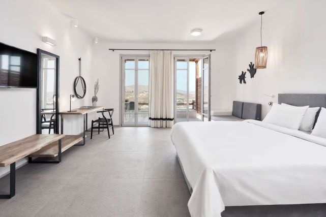 Отель Radisson Blu Euphoria Resort расположен в живописной бухте у пляжа Кало Ливади. Для проживания доступны 34 номера, оформленных в традиционном кикладском стиле с современными удобствами. В распоряжении гостей — тренажёрный, спа, ресторан и бар у бассейна.