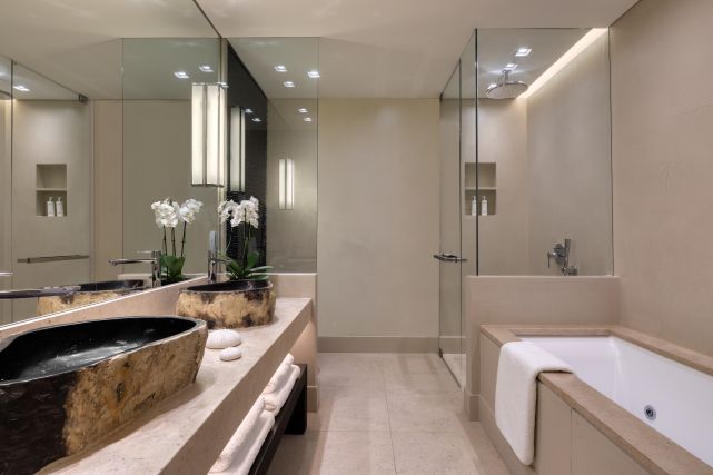 В номерах: Wi-Fi, кондиционер, телевизор, мини-бар, сейф, кофемашина для приготовления эспрессо, банные принадлежности, зеркало для макияжа, халат, тапочки.