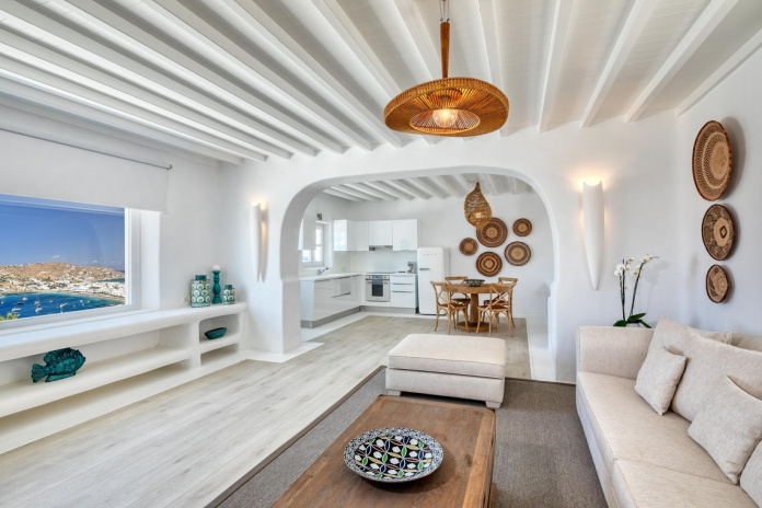 Двухспальная вилла: двуспальная кровать king-size и 2 односпальные кровати, гостиная комната с диваном, обеденным столом и полностью оборудованной кухней, 2 ванные комнаты, гостевой туалет, балкон, терраса, джакузи на террасе, вид на море;