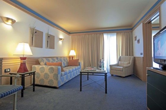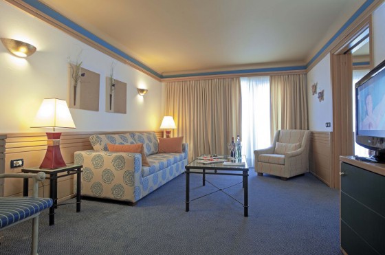 SUITE SV - 48м2, максимально 4 человека Состоит из спальни, гостиной, ванной комнаты и балкона с видом на море.