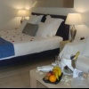 В отеле 136 номеров. ТИПЫ НОМЕРОВ: QUEEN'S MAISONETTE PP - 162м2, максимально 4 человека Двухэтажный номер. Состоит из 2 спален, гостиной, 2 ванных комнат, сауны, террасы с шезлонгами и выходом к частному бассейну. PRESTIGE SUITE - 105м2, максимально 2 человека. Состоит из спальни, гостиной, 2 ванных комнат, террасы с шезлонгами и зонтиками и выходом к частному бассейну с фронтальным видом на море. SEA FRONT PP SUITE - максимально 2 человека Состоит из спальни и гостиной открытого плана, ванной комнаты, террасы с шезлонгами и зонтиками и выходом к частному бассейну. PRIVATE POOL SUITE - 56м2, максимально 2 человека Состоит из спальни и гостиной открытого плана, ванной комнаты и террасы с выходом к частному бассейну. HONEYMOON SUITE - 89м2, максимально 2 человека. Состоит из спальни и гостиной открытого плана, ванной комнаты и террасы. SEAFRONT SUITE - 45м2, максимально 2 человека Состоит из спальни с зоной гостиной, ванной комнаты и террасы. PREMIUM SEA VIEW - 44м2, максимально 2 человека Состоит из спальни, ванной комнаты и террасы с видом на море. EXCLUSIVE GUESTROOM - максимально 2 человека Состоит из спальни с зоной гостиной, ванной комнаты и террасы. PRIVATE POOL SUITE SSV - максимально 2 человека Состоит из спальни и гостиной открытого плана, ванной комнаты, террасы с шезлонгами и зонтиками и выходом к частному бассейну. PRINCESS PP SEAFRONT SUITE - 56м2, максимально 2 человека. Состоит из спальни, гостиной, ванной комнаты и террасы с шезлонгами и зонтиками и выходом к частному бассейну. PRINCESS SEAFRONT GUESTROOM - 45м2, максимально 2 человека Состоит из спальни с зоной гостиной, ванной комнаты и террасы с шезлонгами и зонтиками и выходом к частному бассейну. DELUXE - максимально 2 человека Состоит из спальни с зоной гостиной, ванной комнаты и балкона с боковым видом на море. В НОМЕРЕ: кондиционер, сейф, халаты и тапочки, туалетные принадлежности, фен, набор для приготовления чая и кофе, телевизор, спутниковое ТВ, телефон, мини бар, WiFi(€).