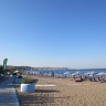 Песчано-галечный пляж в 200 метрах от отеля через дорогу. Лежаки и зонтики - платно, пляжных полотенец нет.