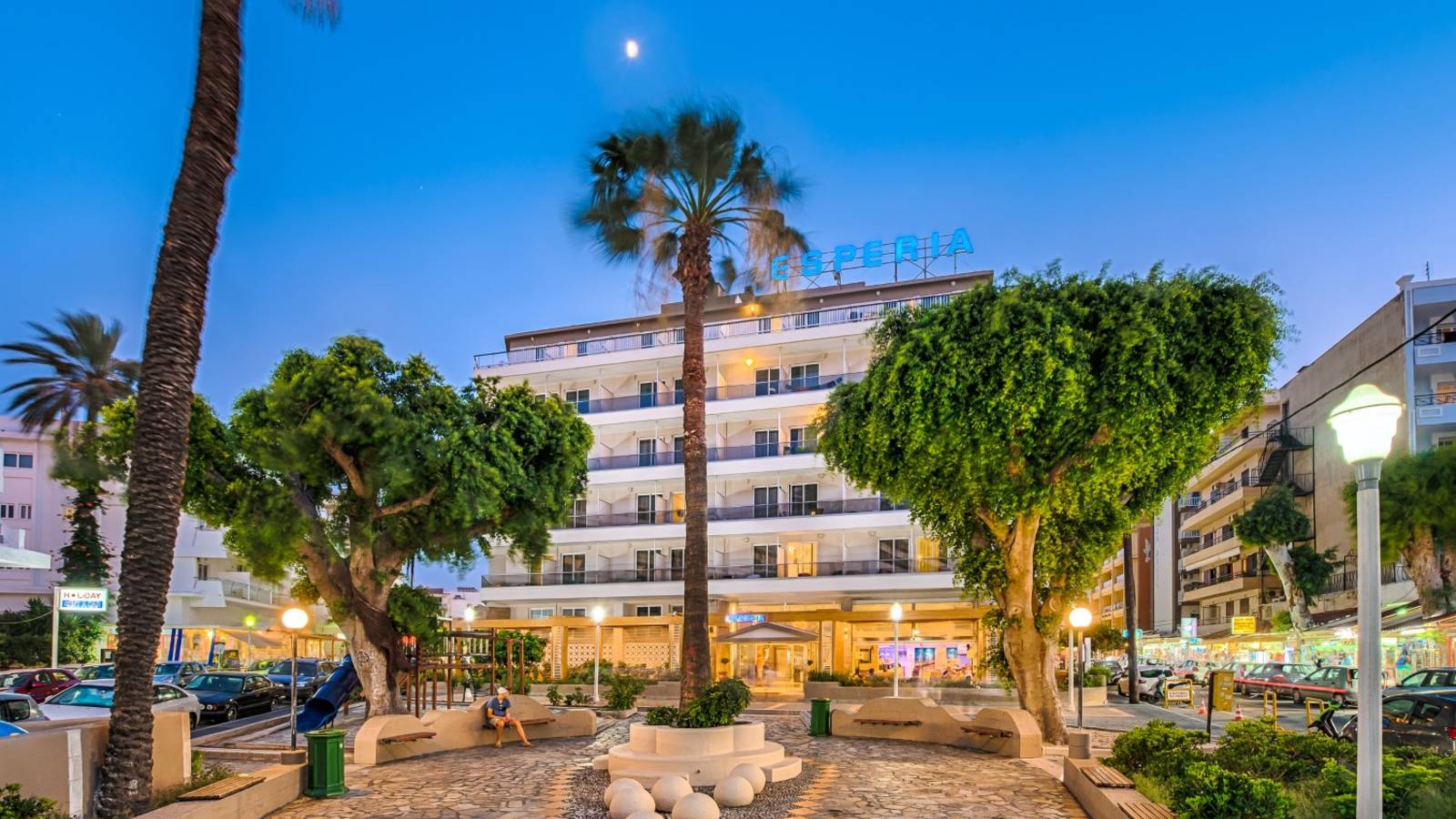 Отель Esperia находится в центре города Родос, рядом с казино. В нескольких минутах ходьбы от отеля находятся рестораны, клубы и магазины. Долина бабочек расположена в 20 км от отеля. Расстояние до международного аэропорта Родоса составляет 13 км.