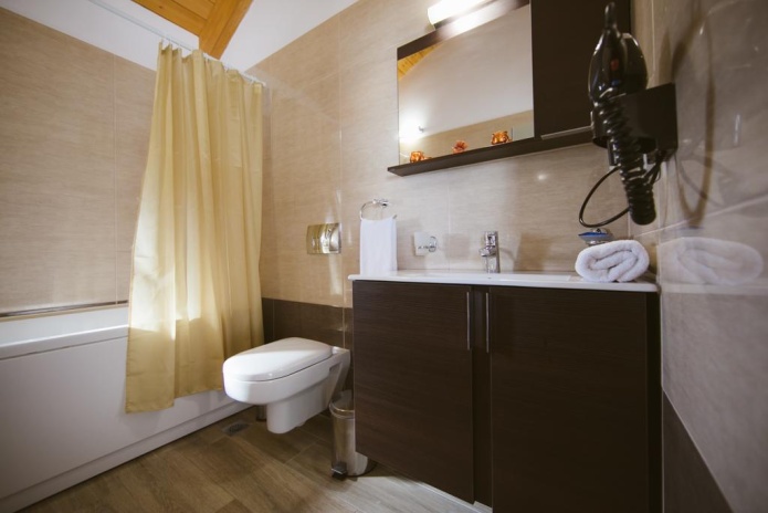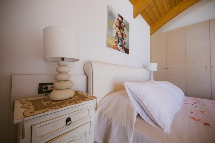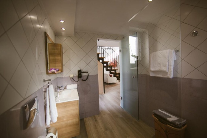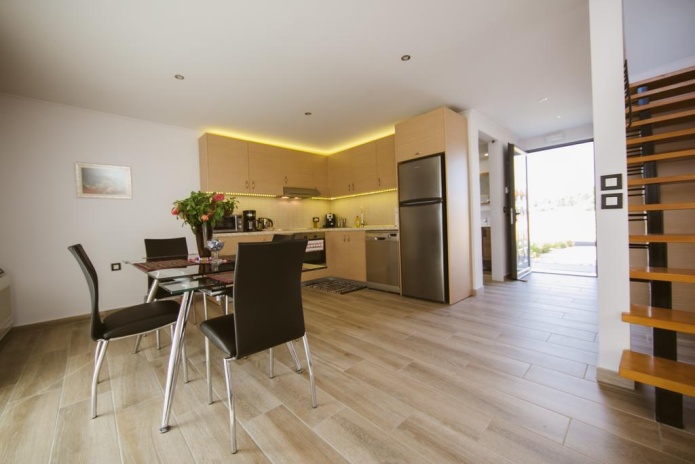 На 1 этаже этих двухуровневых вилл находятся спальня с открытой планировкой, ванная комната с душем, полностью оснащенная кухня и гостиная. На верхнем этаже с балочным потолком в распоряжении гостей вторая спальня, ванная комната с гидромассажной ванной и балкон.