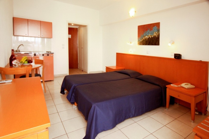Услуги в номере / удобства: кондиционер (бесплатно с 15/07 до 30/09 , в другие периоды – за дополнительную плату), ванная комната (ванна / душ), фен, спутниковое ТВ, радио, телефон, сейф (за дополнительную плату), мини-холодильник, кухонный уголок (только в Studios), балкон.