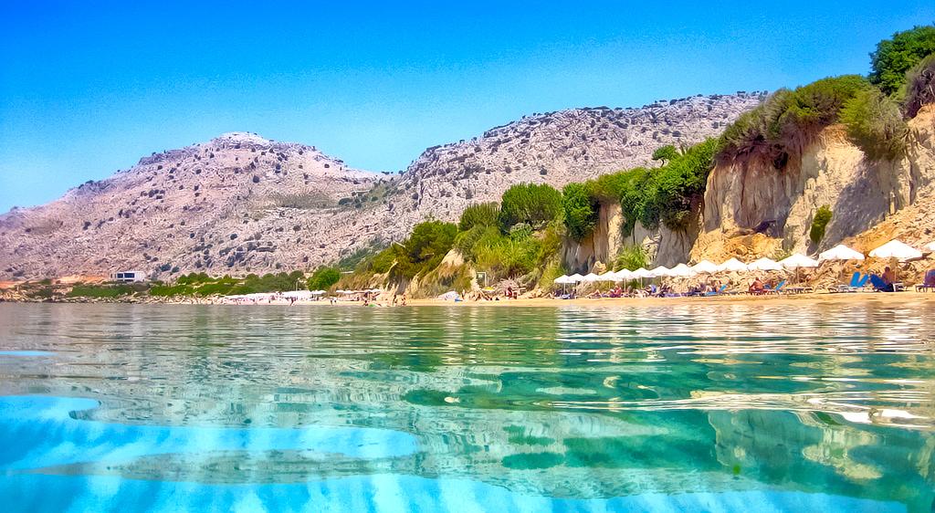 Песчаный пляж Кавос в 2 минутах ходьбы