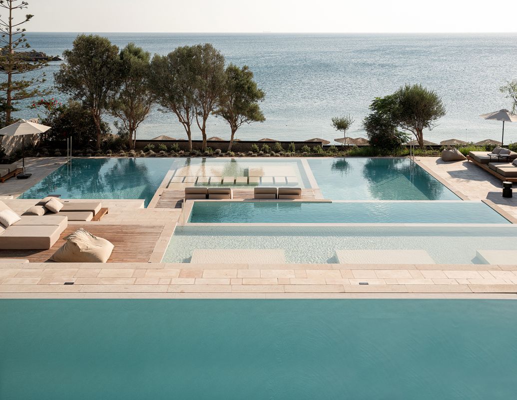 - Junior Suite Pool View (32 м², макс. 4 чел.).