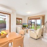 Главная спальня на верхнем этаже – двуспальная кровать, телевизор, кондиционер, сейф, ванная комната (ванна, WC, фен, банный набор). На нижнем этаже – 2 спальни. В одной из них – односпальная кровать, письменный стол, раздвижная дверь с выходом в сад, кондиционер, телевизор; во второй спальне – двуспальная кровать, раздвижная дверь с выходом в сад, кондиционер и телевизор. Здесь же ванная комната с ванной и душем, банный набор. В цокольном этаже – стиральная машина, гладильная доска, сушилка. На первом этаже (ground floor) также расположена гостиная с оборудованной кухней открытой планировки, обеденный стол. Современная мебель, телевизор, спутниковое ТВ, Wi-Fi интернет, раздвижная дверь с выходом в сад и к бассейну.