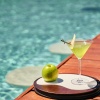 Deluxe Junior Suite Garden View with Private Pool (45 кв.м + бассейн, максимальное размещение – 3 человека, вид на сад). Номер с двуспальной кроватью 160 х 200 см и зоной для отдыха с диваном 90 х 200 см (доп. спальное место), ванной комнатой с двумя раковинами, ванной ии душем, собственным бассейном и террасой с лежаками, столиком и стульями.