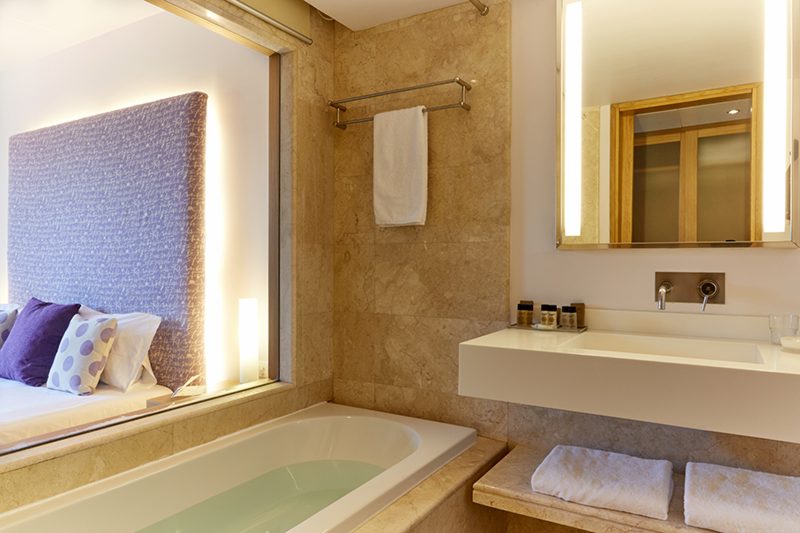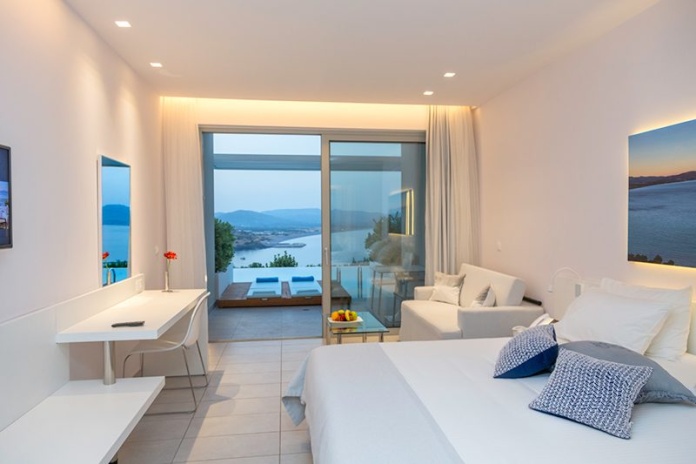 Deluxe Pool Front Sea View (максимальное размещение – 2 человека старше 12 лет, вид на море). Новая категория номеров на верхнем уровне отеля с доступом к бассейну, общему для нескольких номеров. Открытая планировка, терраса с лежаками и панорамным видом на море, двуспальная кровать тили две односпальные кровати, кофейный столик, диван для отдыха, туалетный столик с большим зеркалом. В ванной комнате – душ с функцией гидромассажа. По прибытии – вино, минеральная вода и фрукты.
