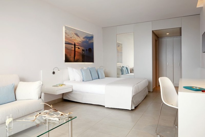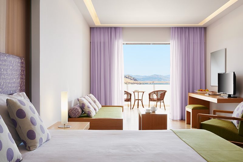 Suite Sea View (максимальное размещение – 4 человека, вид на море). Номер c двумя комнатами, ванной и балконом. В основной спальне – одна кровать king-size или 2 односпальных кровати, туалетный столик с большим зеркалом. Вторая комната – гостиная, которая на ночь трансформируется в спальную зону. В ванной комнате – ванна с душем.  В номере есть всё необходимое для отдыха вчетвером, в том числе место для хранения вещей.