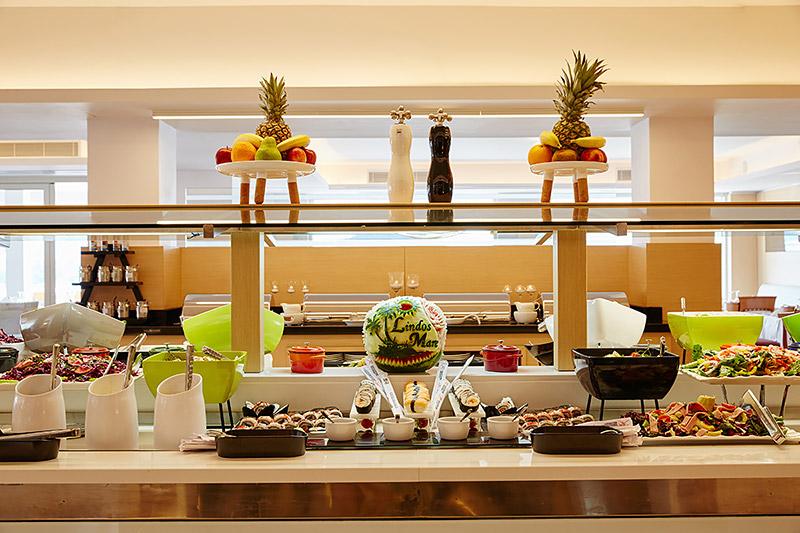 Гости с планом питания HB могут поменять ужин на обед в ресторанах Meltemi или Pelagos (в этом случае гостям выдается специальный ваучер на скидку),  а также поужинать в ресторане Pelagos (один раз за время пребывания, сет-меню, родосская кухня).
