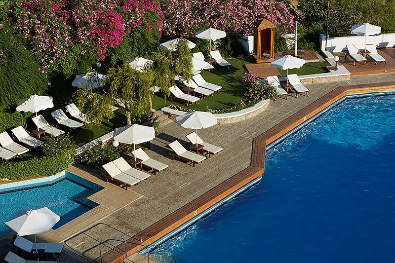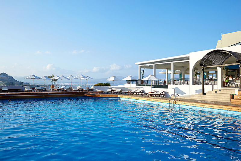 • Pelagos: a la carte ресторан у бассейна, открыт на обед (12:30-16:00) и ужин (19:30-22:30, необходимо предварительное бронирование).