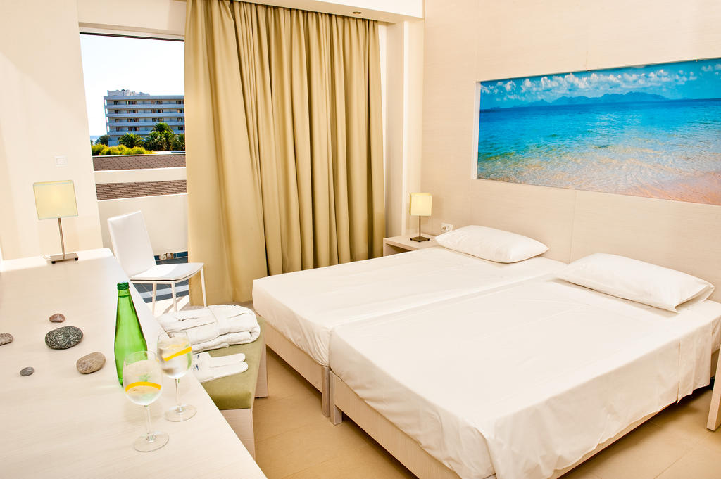 Sea View - 25 кв.м., вид на море, 2 раздельные кровати. Центральный кондиционер, индивидуально контролируемый, Холодильник, Спутниковое телевидение, Фен, Ванна(и душевая), Балкон/Терраса, Кафельная плитка, Музыкальные каналы, доп.кровать - Стандартная кровать.
