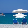 Песчано-галечный пляж, в 200 метрах от отеля, крутой склон.
