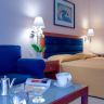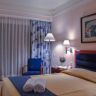 В отеле 241 номер; номера расположены в одном здании (6 этажей). Standard Rooms Back View & Side Sea View & Front Sea View (241) – 25 кв.м. (максимальное размещение 3 взр.). Family Rooms Side Sea View (6) – 50 кв.м. 1 просторная комната (максимальное размещение 3+2 или 4 взр.) По запросу. Junior Suites Sea View (10) – 35 кв.м. просторный холл, отдельная спальня с ванной комнатой (максимальное размещение 2+2 или 3 взр.). В отеле несколько Connecting rooms. Услуги в номере/удобства: кондиционер (24 ч, центральный, 01/06 – 30/09), двуспальная кровать / 2 отдельные кровати, ванная комната (ванна и душ) / телефон, ванные принадлежности, банные халаты и тапочки (только в Junior Suites), фен, спутниковое ТВ с платными каналами (1 канал на русском языке), радио, телефон, мини-бар (за дополнительную плату), сейф (бесплатно), доступ в интернет ADSL и Wi-Fi (за дополнительную плату), меблированный балкон. В отеле есть 2 номера для гостей с ограниченными возможностями и специальные наклонные спуски / подъемы во всех общественных зонах