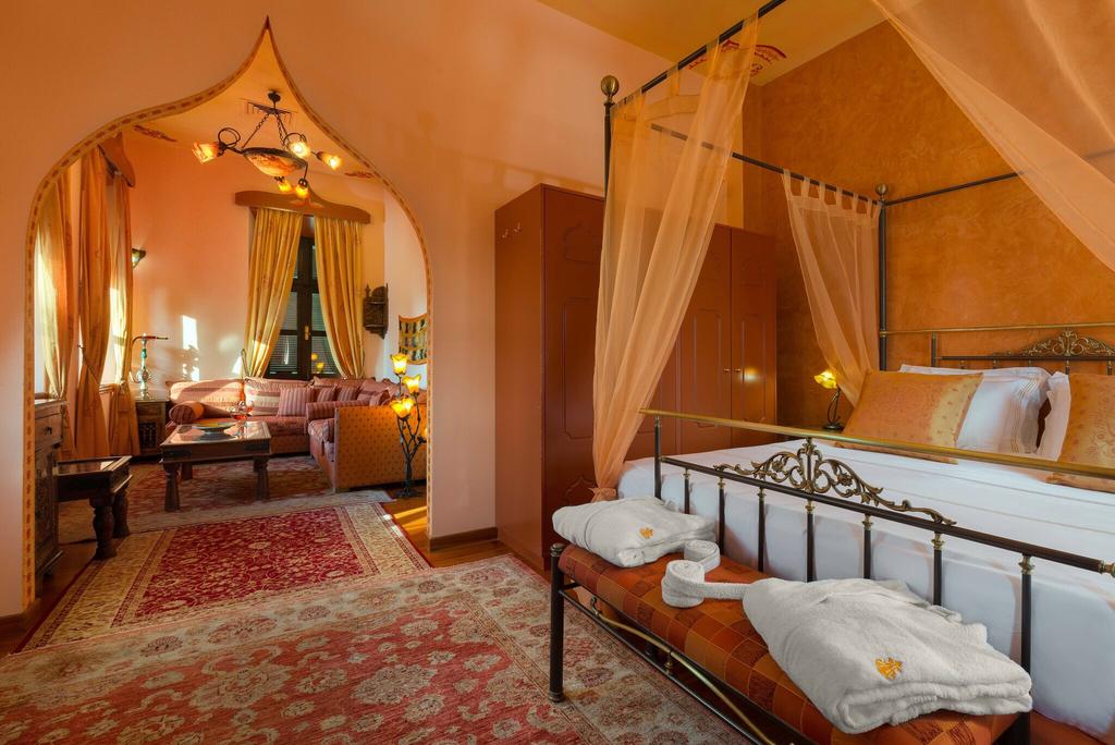 Tzami Superior Suite- доминирующим цветом Tzami Superior Suite стал оранжевый. В дизайне же интерьера основной акцент сделан на арочные стены, разделяющие номер с доминирующими восточными мотивами.