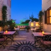 Double Medieval - 16 кв.м., номер, как следует из названия, выполнен в, так называемом, «Средневековом» стиле: с каменными стенами, арками, железными канделябрами. Он расположен рядом с садом и верандой с видом на море и порт.