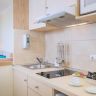 Обеденный стол и стулья, кухонный уголок, холодильник, микроволновая печь, тостер, чайник, кофеварка, блендер.