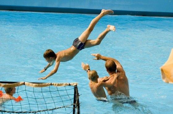 2 открытых бассейна с пресной водой, 1 открытый бассейн для активных мероприятий с пресной водой, шезлонги и зонты возле бассейнов (бесплатно), пляжные полотенца – предоставляются у бассейна.
