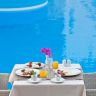 В отеле 95 комфортабельных номеров, среди них: 12 одноместных, 11 двухместных, 8 трехместных, 21 пятиместный номер, 28 Junior Suites и 10 Studios. В каждом номере есть балкон или терраса, откуда открывается вид на бассейн, ванная комната, кондиционер, мини-бар, радио, сейф, спутниковое телевидение, телефон с прямым набором, фен, холодильник.