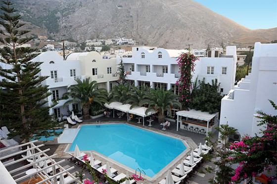 Расположенный на острове Санторини отель представляет собой комплекс из четырех зданий, построенных в традиционном архитектурном стиле в сочетании с современными средствами обслуживания. Отель находится на известном пляже Камари, в центре курортной зоны, с удобным доступом ко всем ее ресторанам, барам и ночной жизни. Просторное, с кондиционируемым воздухом, фойе отеля украшено картинами, а расположенный в центре комплекса бар, с видом на море и бассейн, окружен красивым садом.