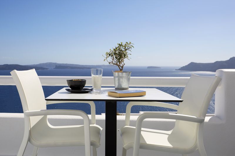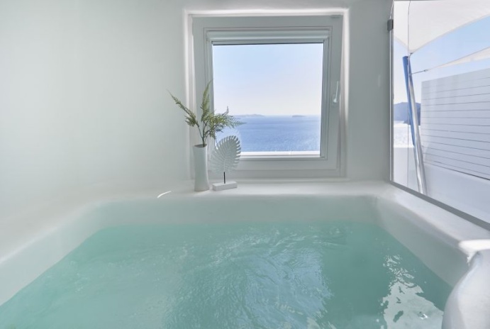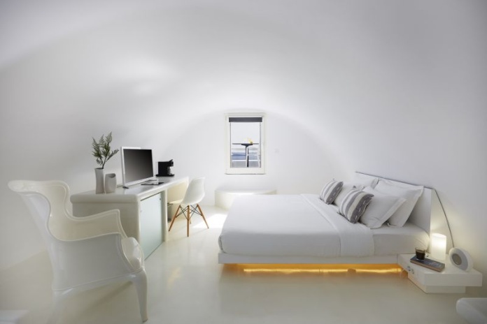 Отель со стильными номерами в индивидуальном дизайне, оформленными в белых тонах и в современном стиле. С террас номеров открывается захватывающий вид на кальдеру.