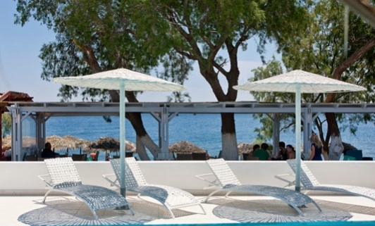 Отель расположен на красивом черном галечном пляже городка Камари, на юго-восточном побережье острова Санторини, в 5 км от аэропорта, в 10 км от порта, в 8 км от столицы острова города Фира, в 50 метрах от автобусной остановки. В Камари гости отеля найдут множество ресторанчиков, кафе и магазинов. Отель открыт с 1 мая по 20 октября.
