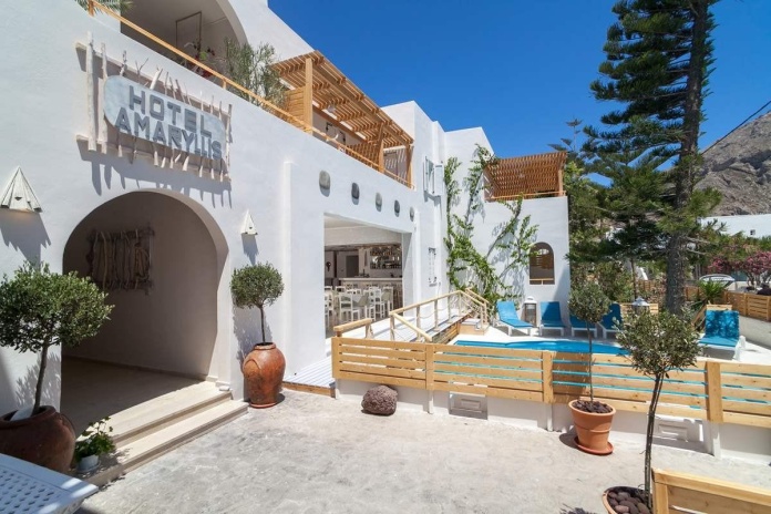 Отель Amaryllis находится в 100 метрах от «черного» пляжа Периссы. Из отеля открывается вид на море и горы. К услугам гостей открытый бассейн, сад, бар с террасой и фитнес-зал. Отель построен в 1991 году, последняя реновация прошла в 2009 году.