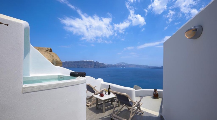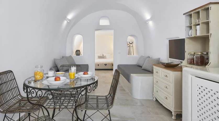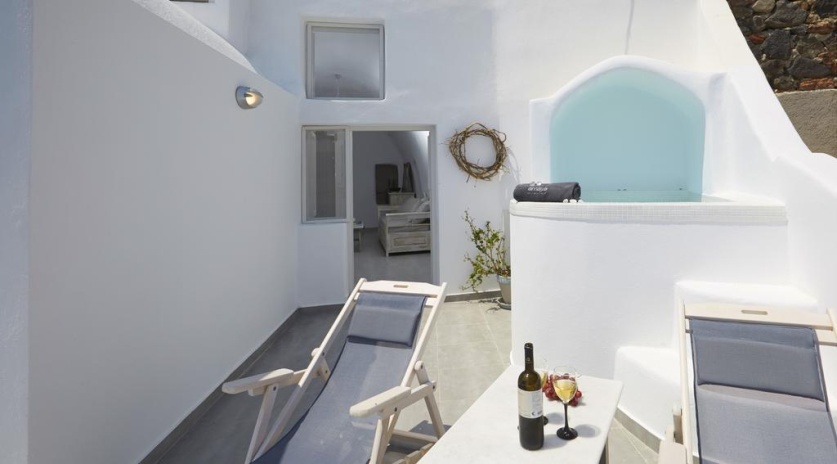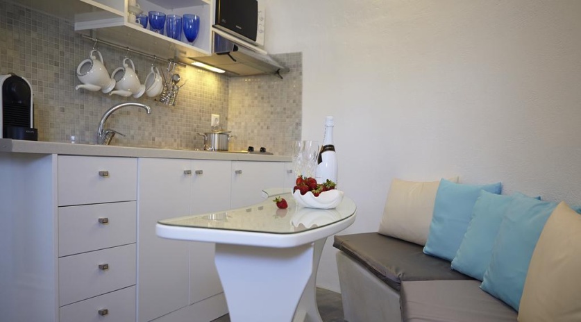 Комплекс вилл расположен в городе Ия. Напротив комплекса находится автобусная остановка. Расстояние до баров и ресторанов составляет 50 метров, до пляжа Амуди — 1,5 км. До аэропорта Санторини — 18 км.